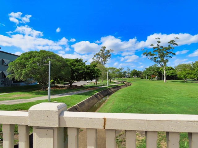 Hanlon Park is a 5.2ha urban park located in Greenslopes, Brisbane. The park is dominated by sparse vegetation and a concrete lined channel running the full length of the park. There are some limited recreational amenities and a shared pathway along the channel.
